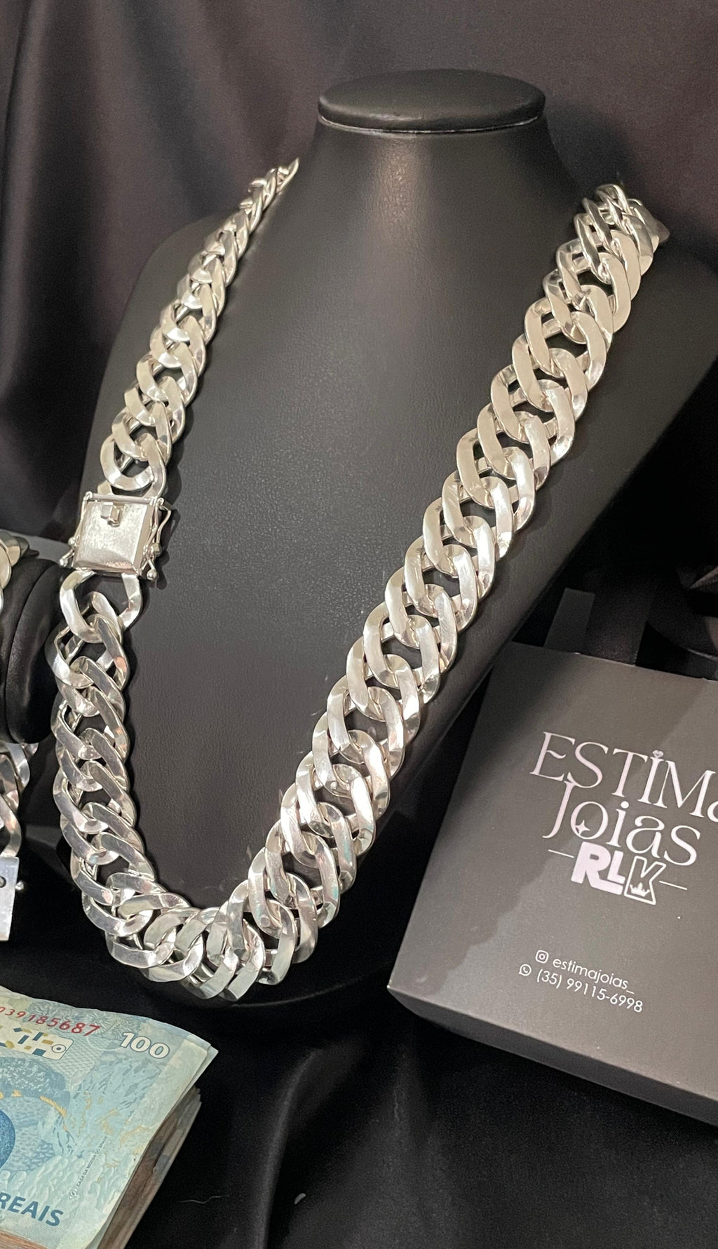 Eleve seu estilo com esta corrente sofisticada e elegante, ela se destaca pela presença marcante. O fecho de gaveta com trava dupla garante segurança e praticidade.