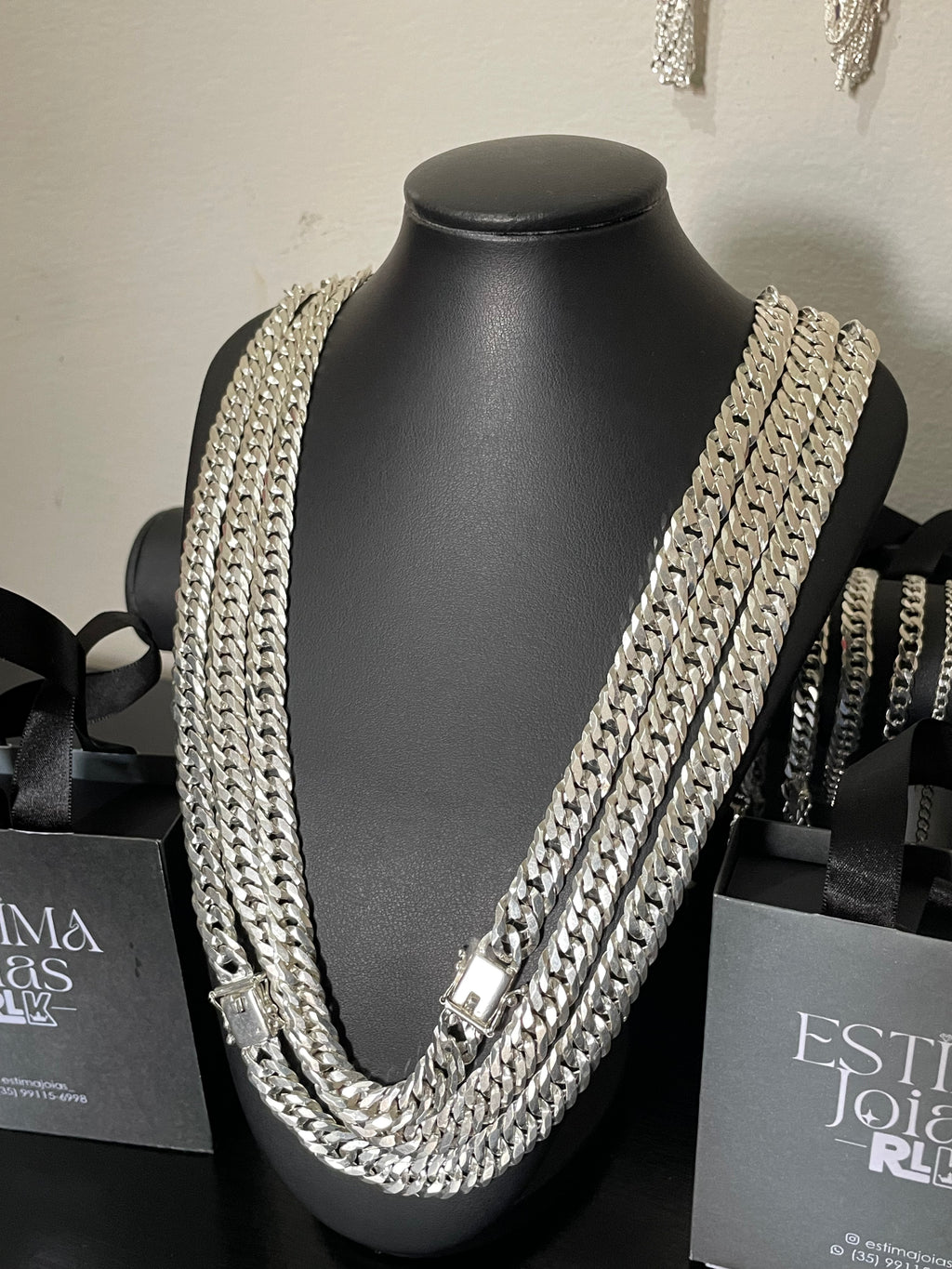 Eleve seu estilo com esta corrente sofisticada e elegante, ela se destaca pela presença marcante. O fecho de gaveta com trava dupla garante segurança e praticidade.